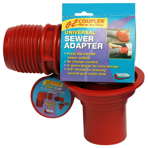 View full detailsValtterra F02-3103 Sewer Hose Connector; EZ Coupler; For Connecting Sewer Hose to Dump Station; Universal Adapter; 90 Degree Elbow; Red; With Retai...