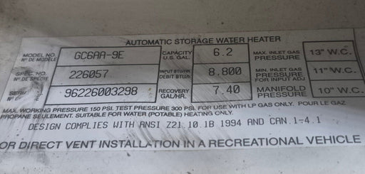 View full detailsUsed Complete G6A-8E Atwood Hot Water Heater 6 Gal. Auto ignition propane. Measurements- 16 1/8" W x 12 1/2" H x 16 1/2" D **Notes- Unit is fully t...