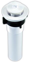 JR Products Strainer with Pop-up Stopper. Fits any sink opening 1-3/8in to 1-3/4in. 1-1/4in tailpiece attaches to current plumbing drain pipe. Includes: strainer, stopper, foam gasket and locknut. 1-1/4in x 5in strainer, packaged, White.